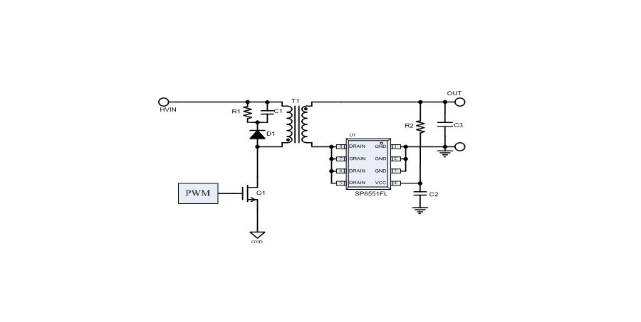 SP6551FL是一顆應用于隔離反激電源系統的次級同步整流芯片。通過模擬次級肖特基整流二極管的工作并以極低的導通電阻來減小損耗。SP6551FL可以工作在斷續模式(DCM)和準諧振模式(QR)。使用先進的消隱技術使得芯片在各種工作模式下可以穩定可靠地工作。