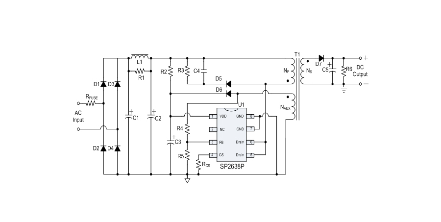 SP2638P是一款性能優(yōu)異的原邊反饋控制電路,應(yīng)用于小功率AC/DC充電器與適配器。控制電路使用原邊采樣技術(shù)進(jìn)行精確的恒流、恒壓控制,可以省去一般應(yīng)用中的光耦與TL431。
